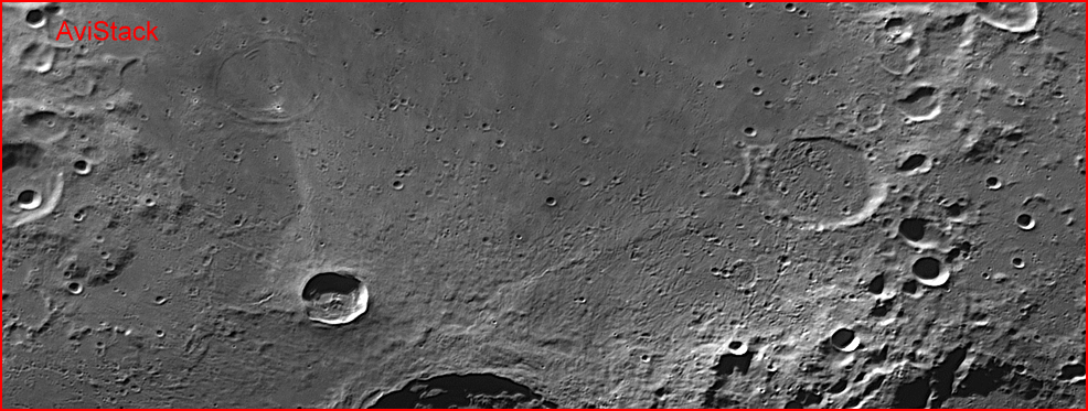 Near crater Theophilus. Image by Wolfgang Paech, C14 (click on image for full resolution). In Registax 96 reference points were used for the 1360 frames (1024x768) and took about 90 minutes. AviStack used 2571 reference points and needed 29 minutes for procesing.